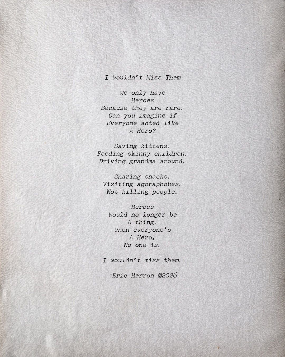 Conventional Heroes Devalue “Small” Acts By Default. I believe that checking on your elderly neighbor, speaking up for a timid one, shaking the hand of the smelly man who wanders the streets, spending time with the lonely kid… these are truly heroic acts. But the existence of conventional heroes and their over-the-top acts of greatness convince us that nothing we do could or should be worthy of a statue or a holiday.